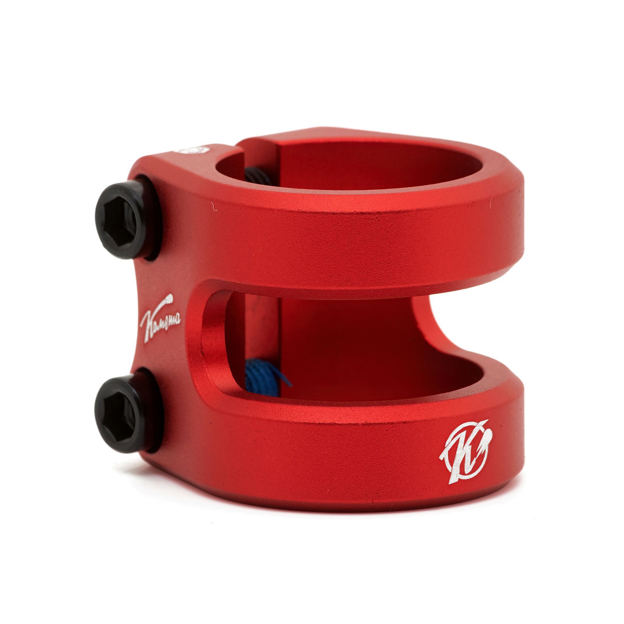 Двойной хомут Комета подходит под рули диаметром 34,9 мм и 31,8 мм. Материал алюминий, проставка под тонкие рули идет в комплекте.
