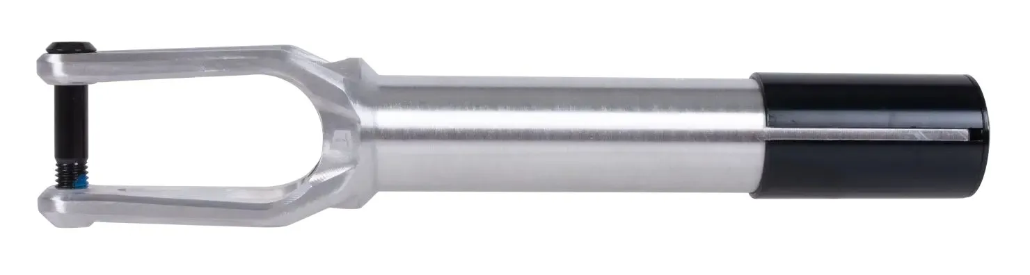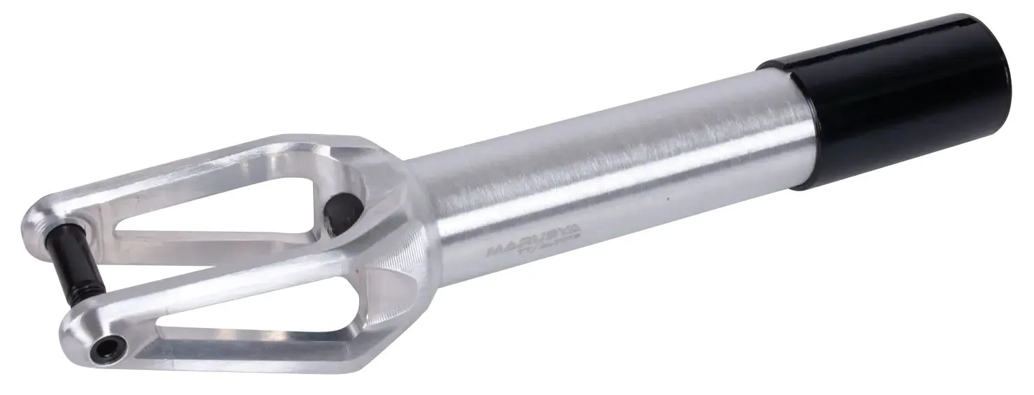 Она точно полюбится всем райдерам любого уровня. Изготовлена из термообработанного алюминия 7075, обеспечившего вилке невероятную прочность и достаточно низкий вес — без фурнитуры он составил 164 грамма. А с хик колбой и всем остальным – 210 граммов. Ось полая, вместо гайки — в одном пере нарезана резьба.
